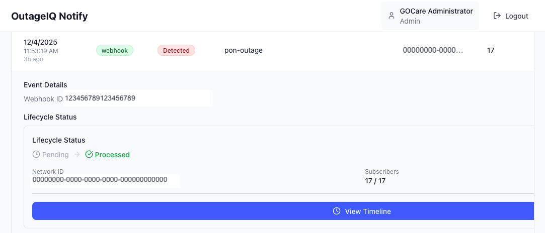 Every outage event is assigned a unique group identifier, automatically connecting all impacted subscribers.