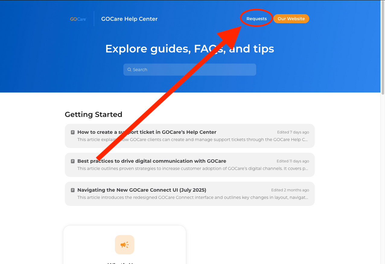 To request support, clients must use the GOCare Help Center portal. To access it: