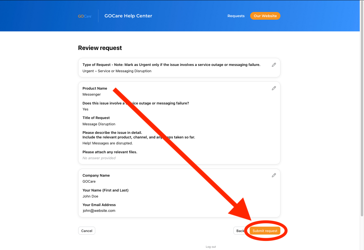 SMS Disruptions – Before submitting, confirm that the GOCare SMS phone number hasn’t been relocated. If it has, update GOCare in your request.