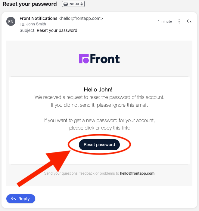 Front Notifications hello@frontapp.comIt includes a secure password reset link.