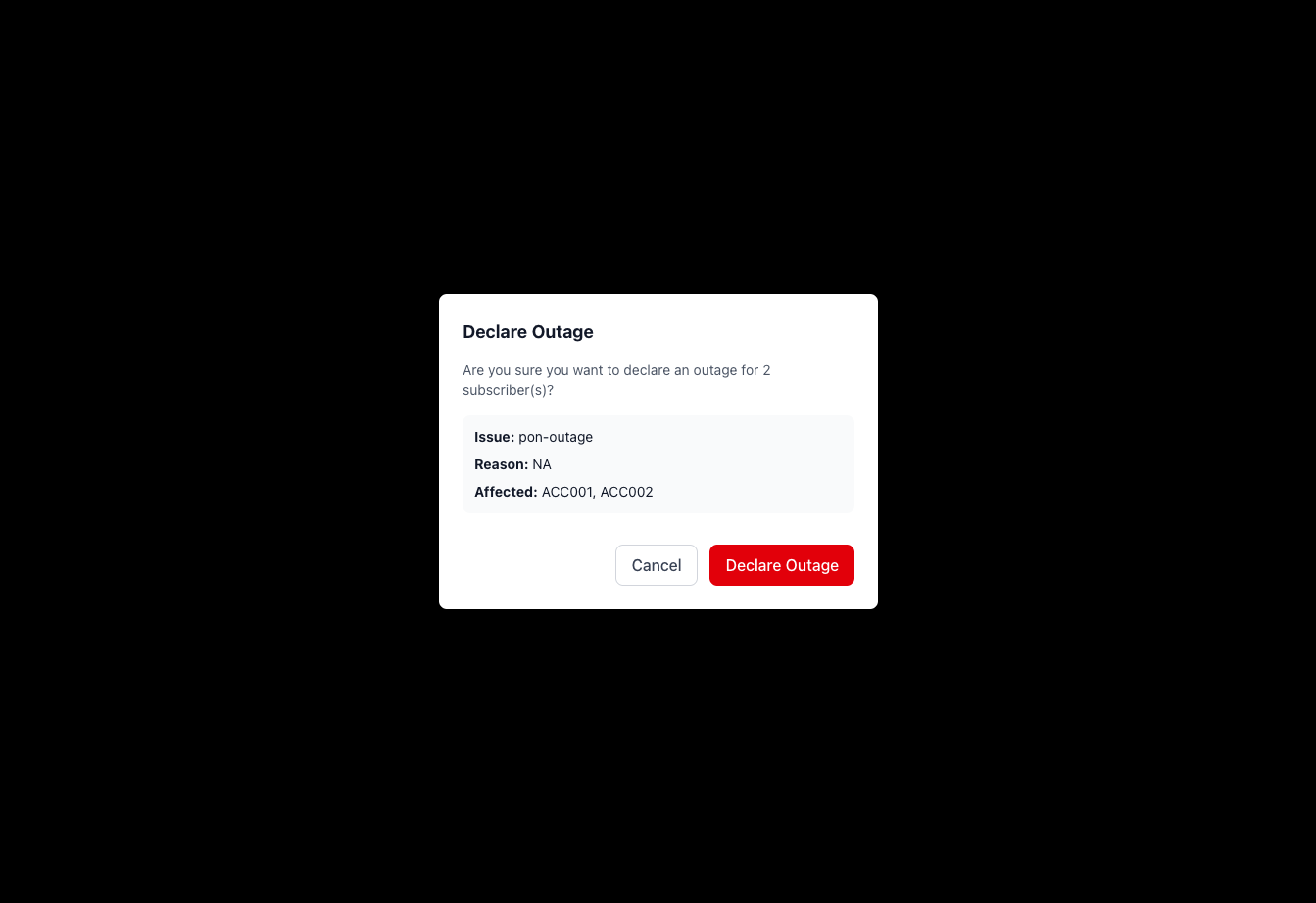 Once all affected subscribers have been added, select "Declare Outage" from the bottom right corner.