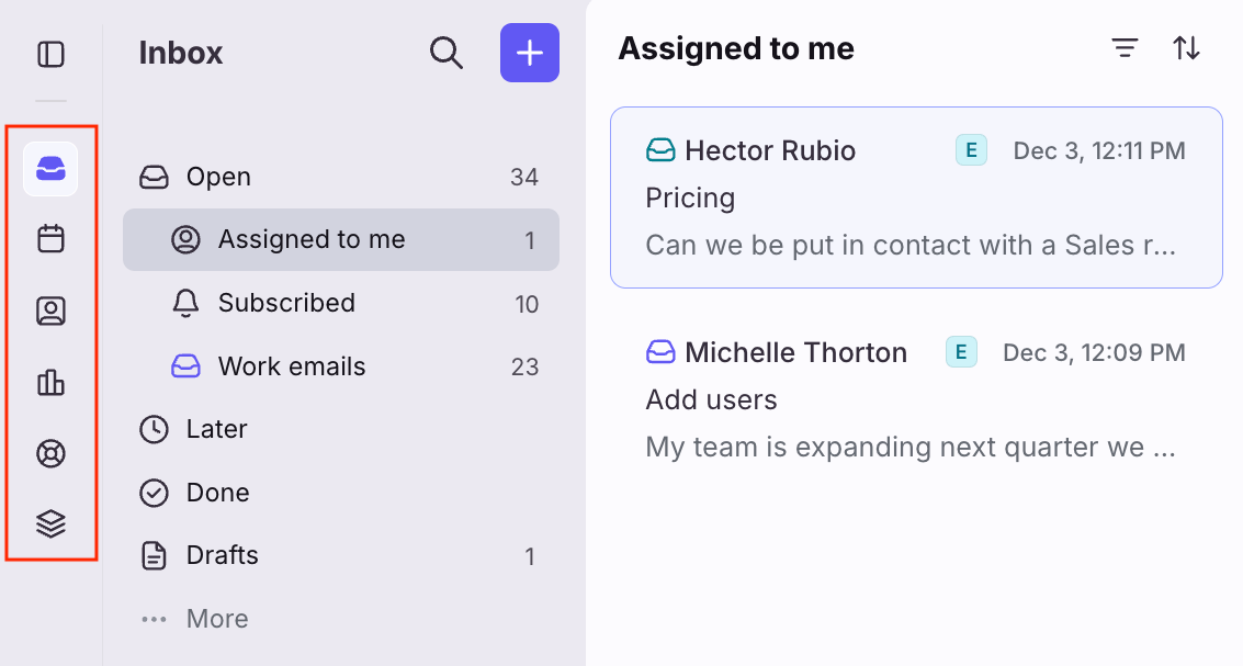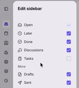 Collapsible sidebar to create more space for reading and replying, with hover-based access to inbox sections