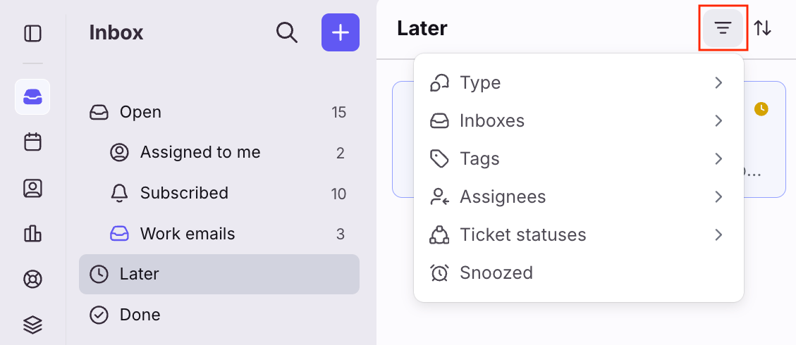 Filter controls to focus on specific inboxes, tags, or attributes