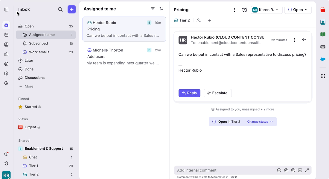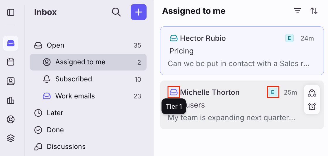 Inbox and workspace indicators to quickly identify where a conversation belongs